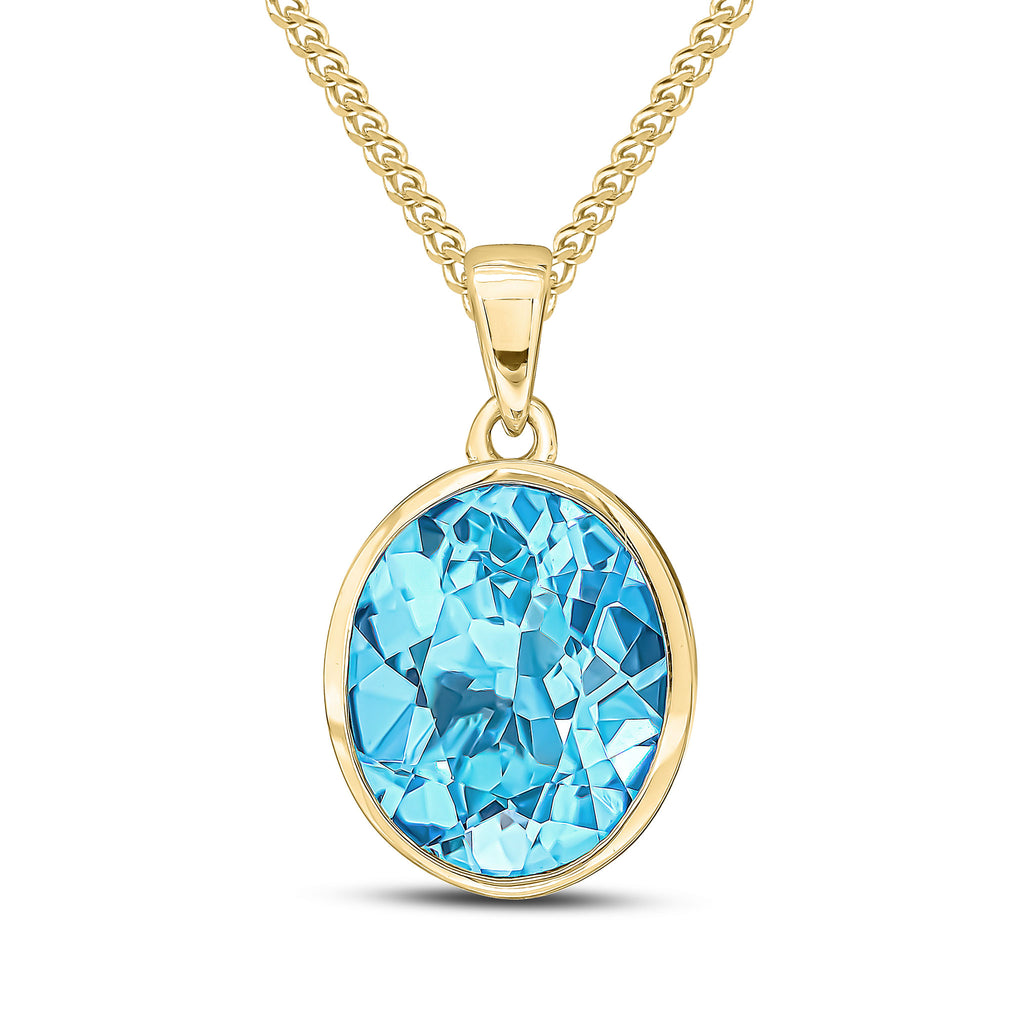 9CT Yellow Gold Oval Swiss Blue Topaz Rubover Pendant 12x10mm