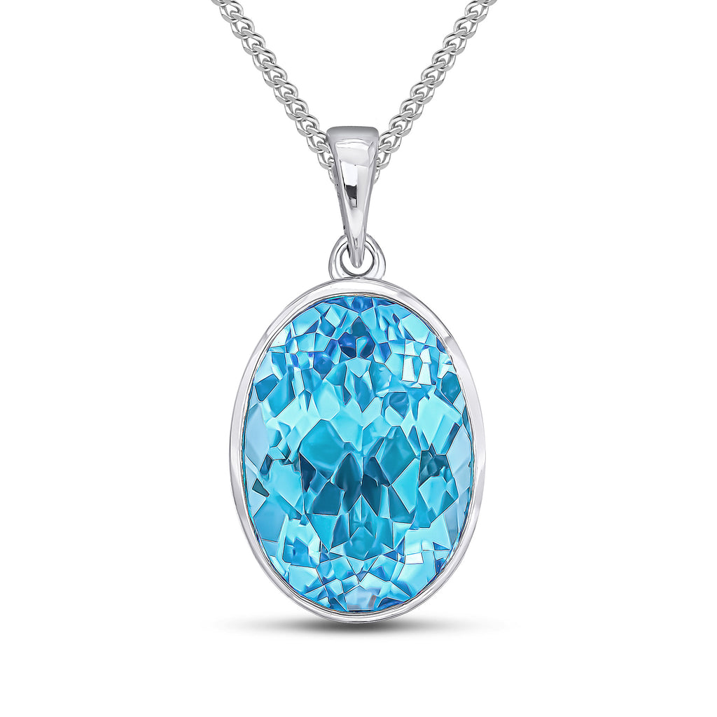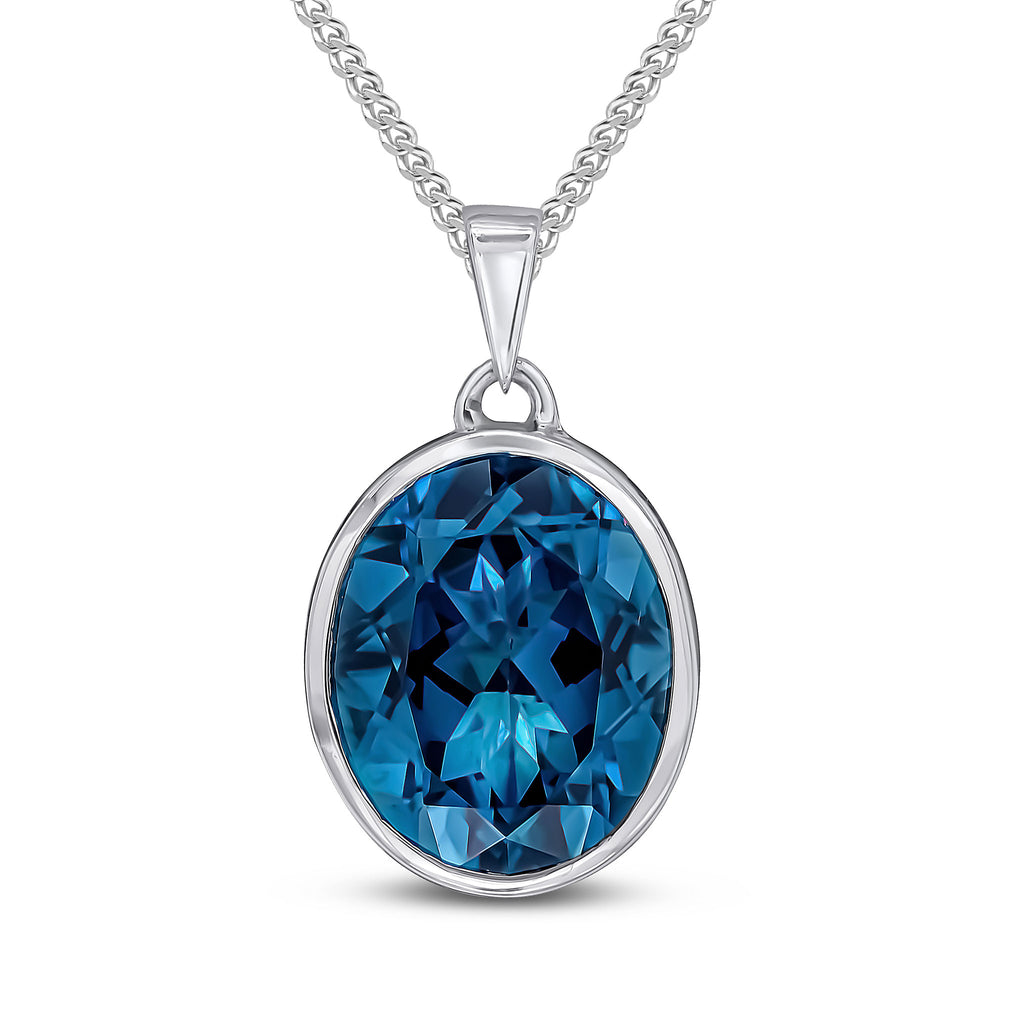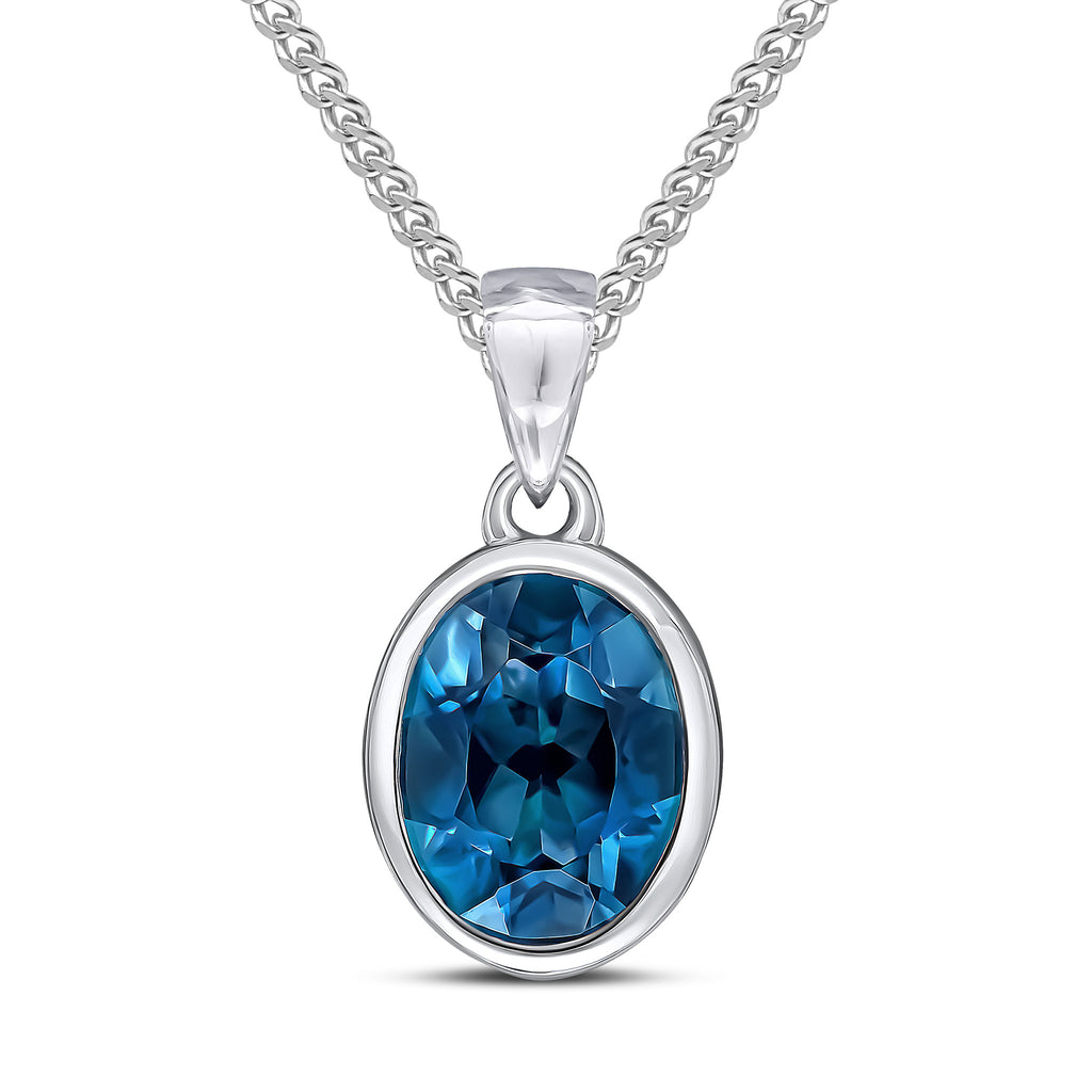 9CT White Gold Oval London Blue Topaz Rubover Pendant 9x7mm