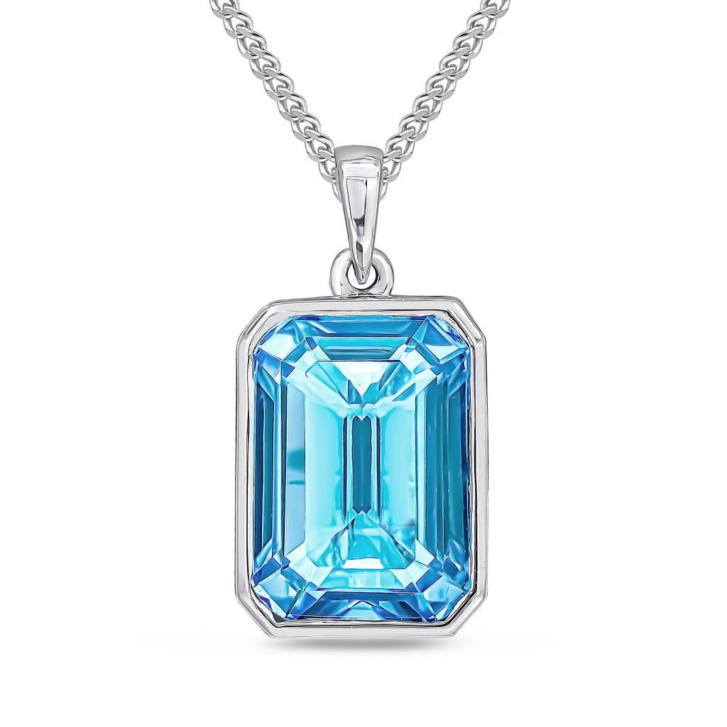 9CT White Gold Octagonal Swiss Blue Topaz Rubover Pendant 14x10mm