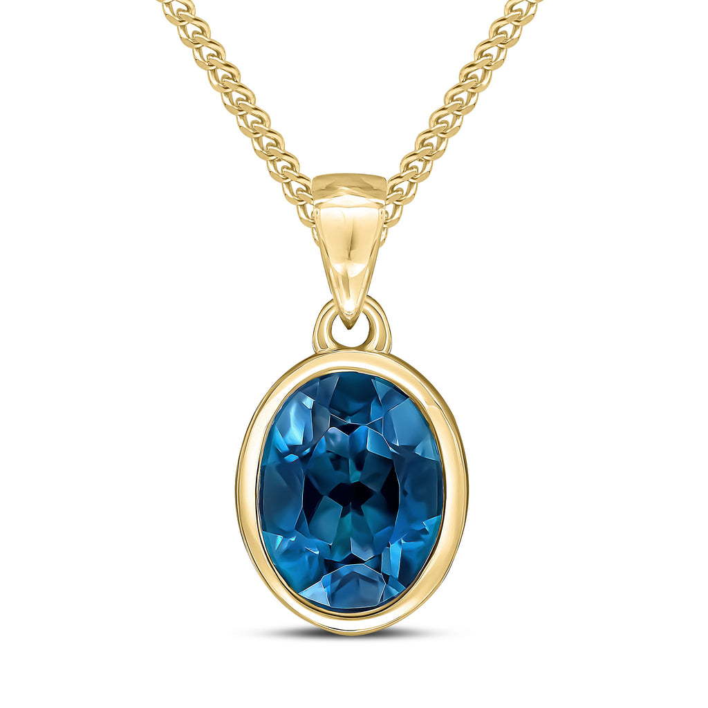 9CT Yellow Gold Oval London Blue Topaz Rubover Pendant 9x7mm
