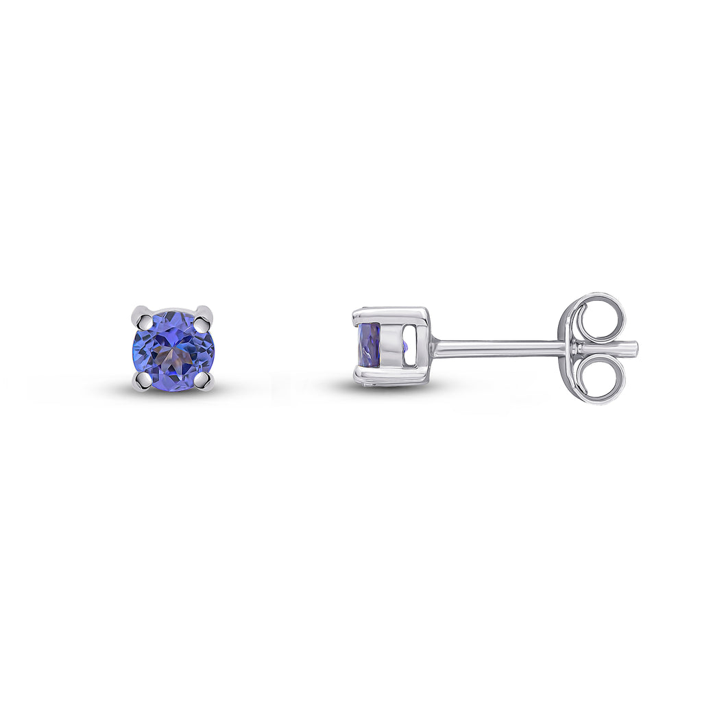9CT White Gold Round Tanzanite Claw Stud Earrings 4mm