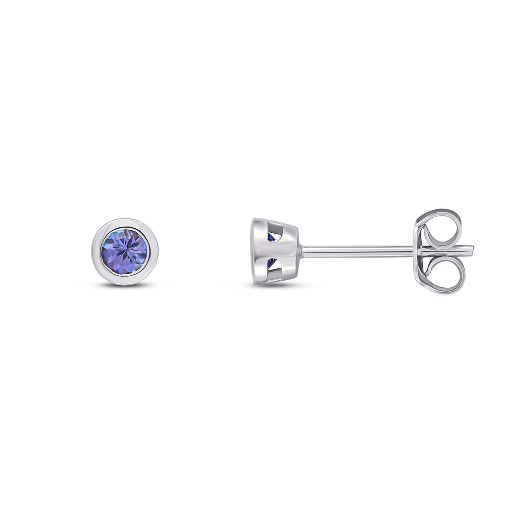 9CT White Gold Round Tanzanite Rubover Stud Earrings 3mm
