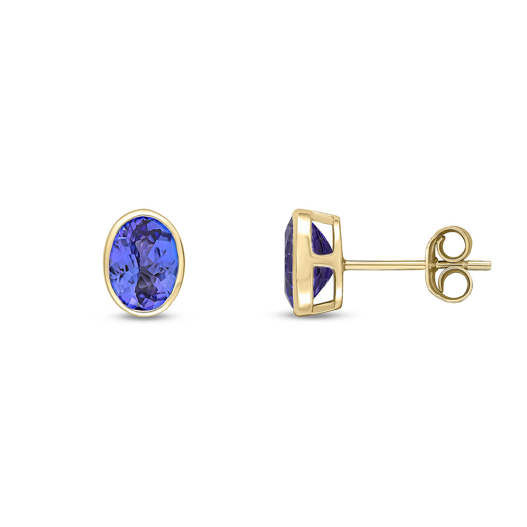 9CT Yellow Gold Oval Tanzanite Rubover Stud Earrings 7x5mm