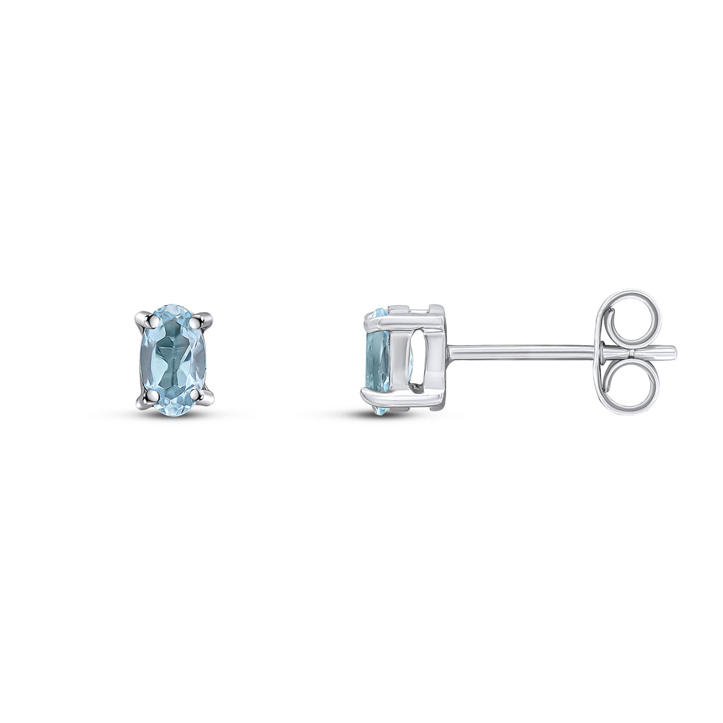 9CT White Gold Oval Aquamarine Claw Stud Earrings 5x3mm