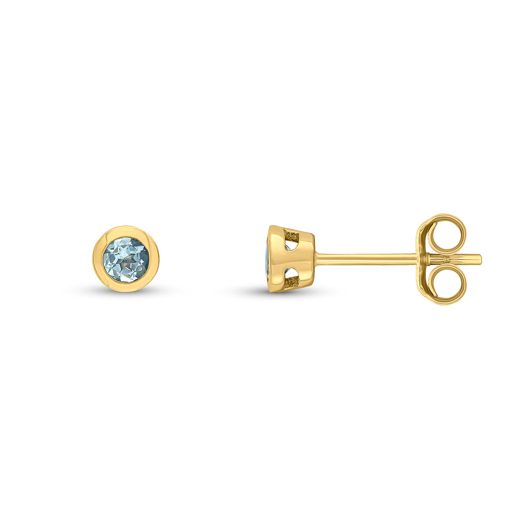 9CT Yellow Gold Round Aquamarine Rubover Stud Earrings 3mm