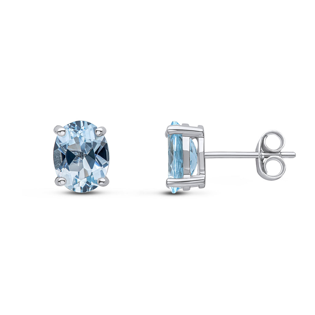 9CT White Gold Oval Aquamarine Claw Stud Earrings 8x6mm