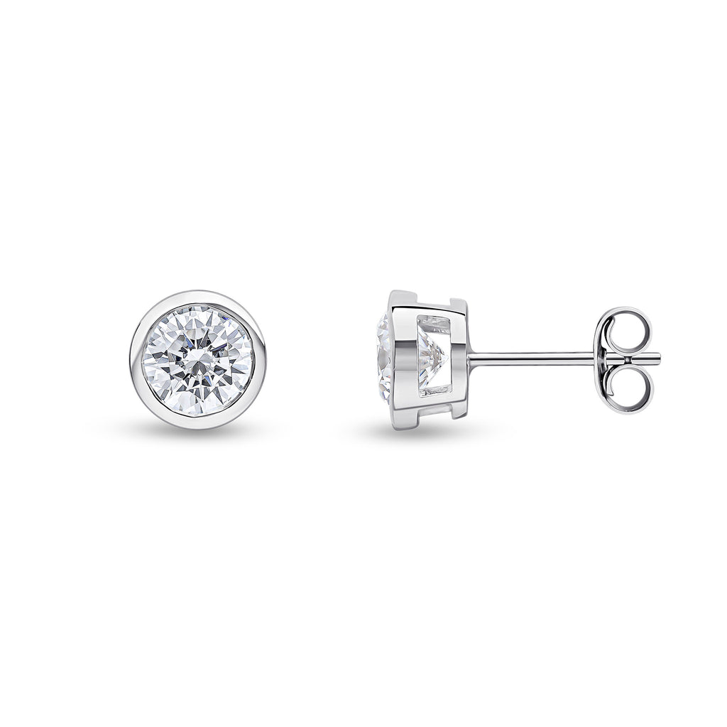 9CT White Gold Round CZ Cubic Zirconia Rubover Stud Earrings 6mm