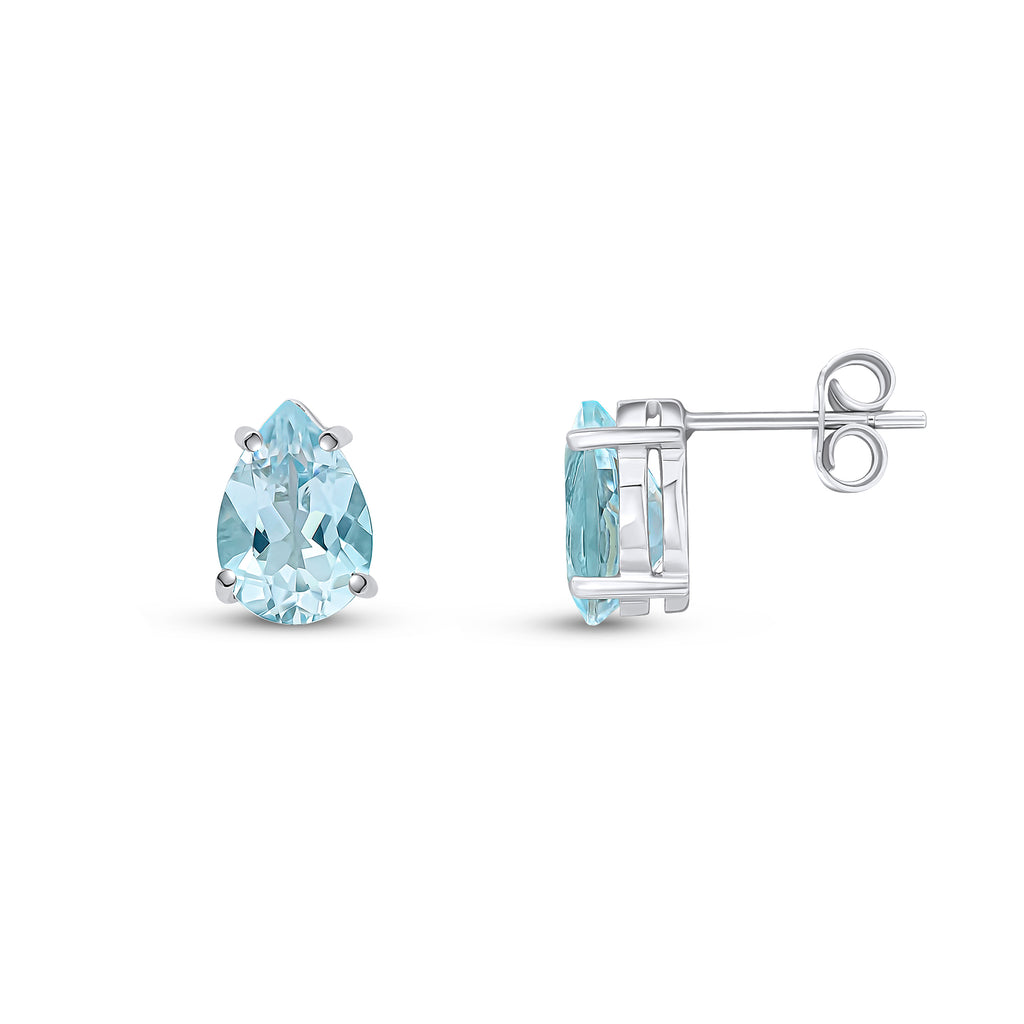 9CT White Gold Pear Shaped Aquamarine Claw Stud Earrings 9x6mm
