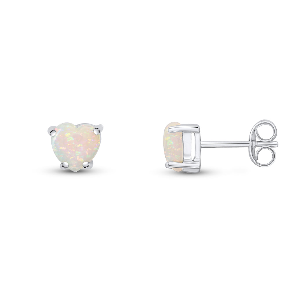 9CT White Gold Heart Opal Claw Stud Earrings 6mm