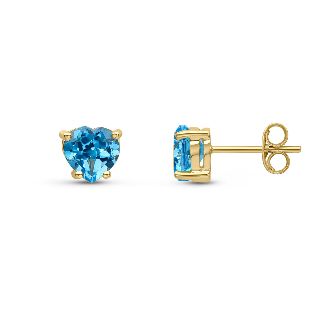 9CT Yellow Gold Heart Swiss Blue Topaz Claw Stud Earrings 6mm