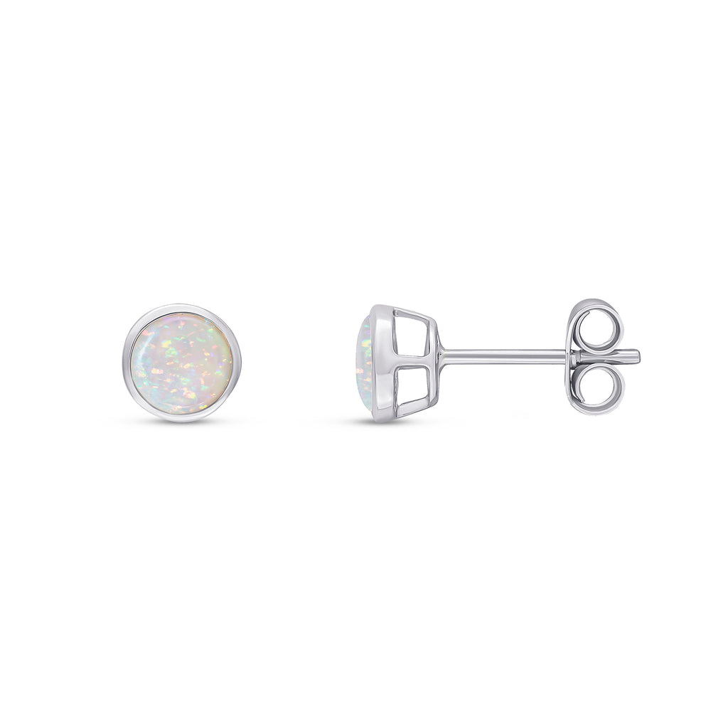 9CT White Gold Round Opal Rubover Stud Earrings 5mm