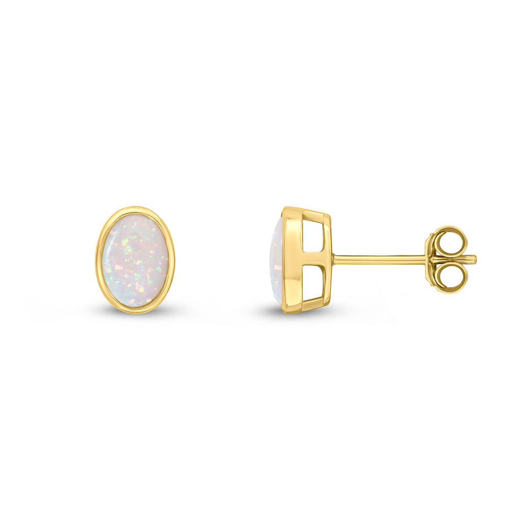 9CT Yellow Gold Oval Opal Rubover Stud Earrings 7x5mm