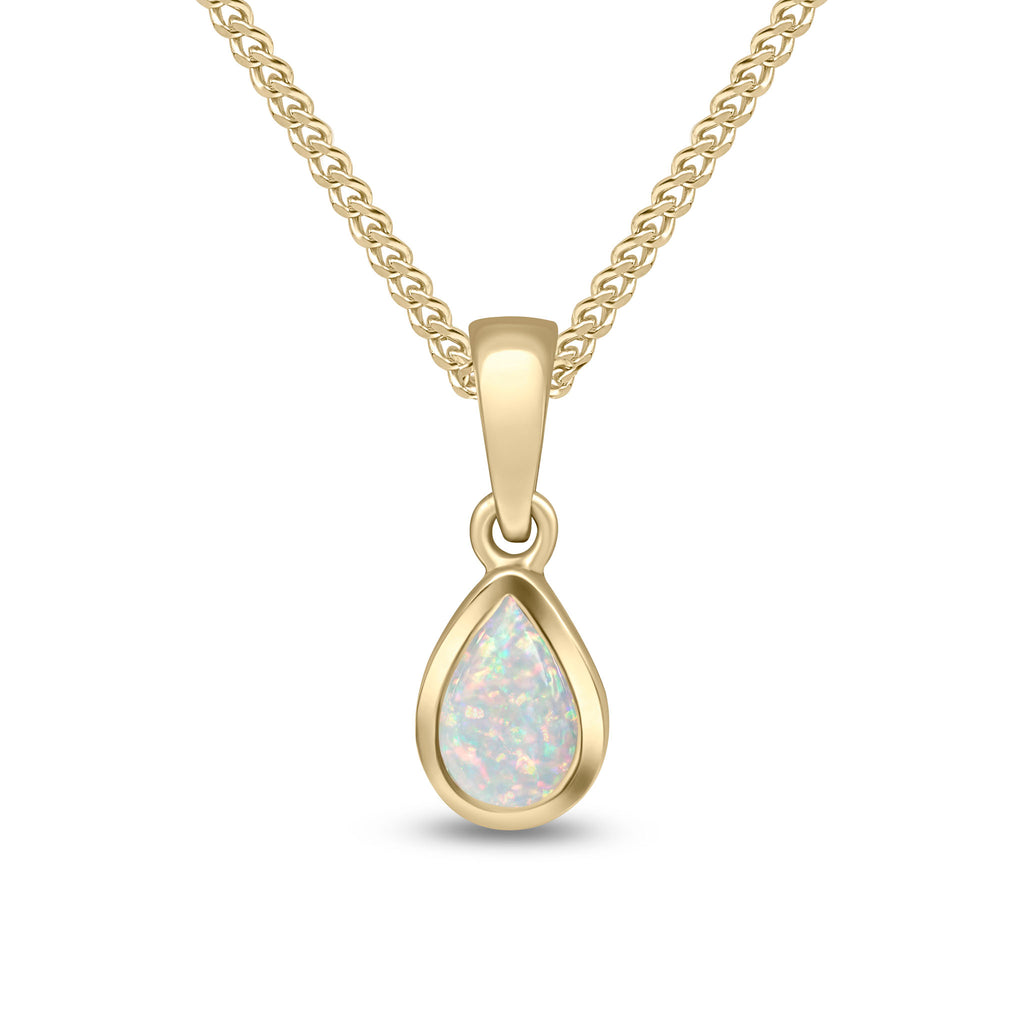 9CT Yellow Gold Pear Shaped Opal Rubover Pendant 6x4mm