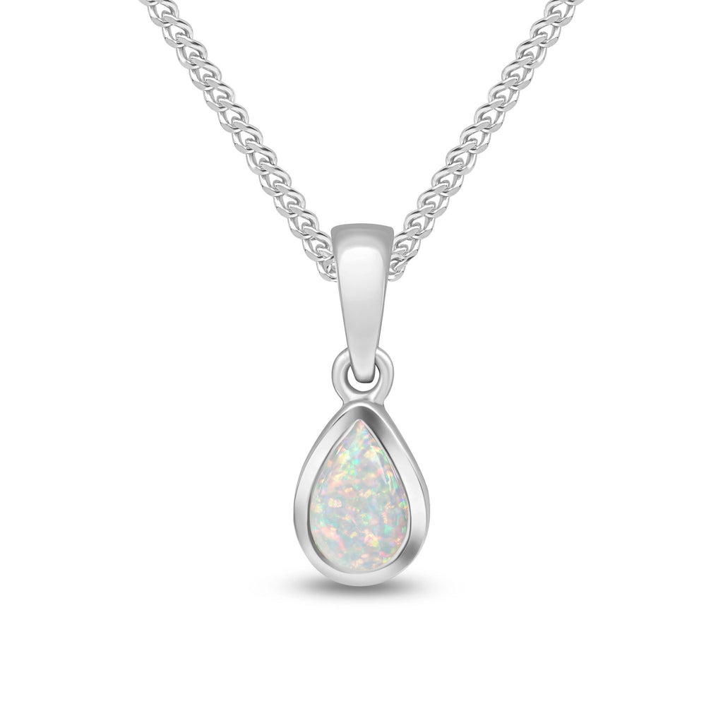 9CT White Gold Pear Shaped Opal Rubover Pendant 6x4mm