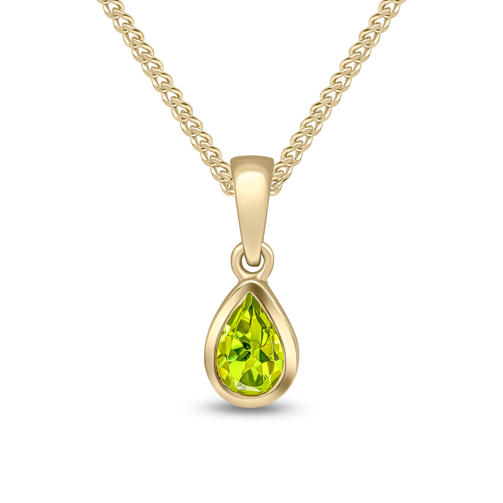 9CT Yellow Gold Pear Shaped Peridot Rubover Pendant 6x4mm