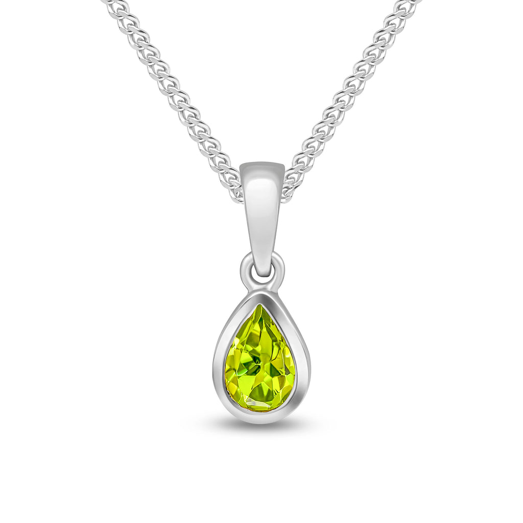 9CT White Gold Pear Shaped Peridot Rubover Pendant 6x4mm