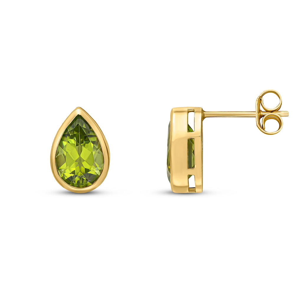 9CT Yellow Gold Pear Shaped Peridot Rubover Stud Earrings 9x6mm