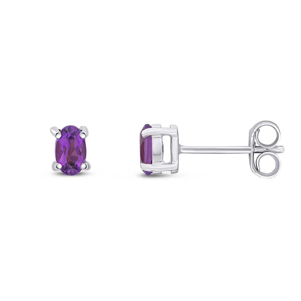 9CT White Gold Oval Amethyst Claw Stud Earrings 5x3mm