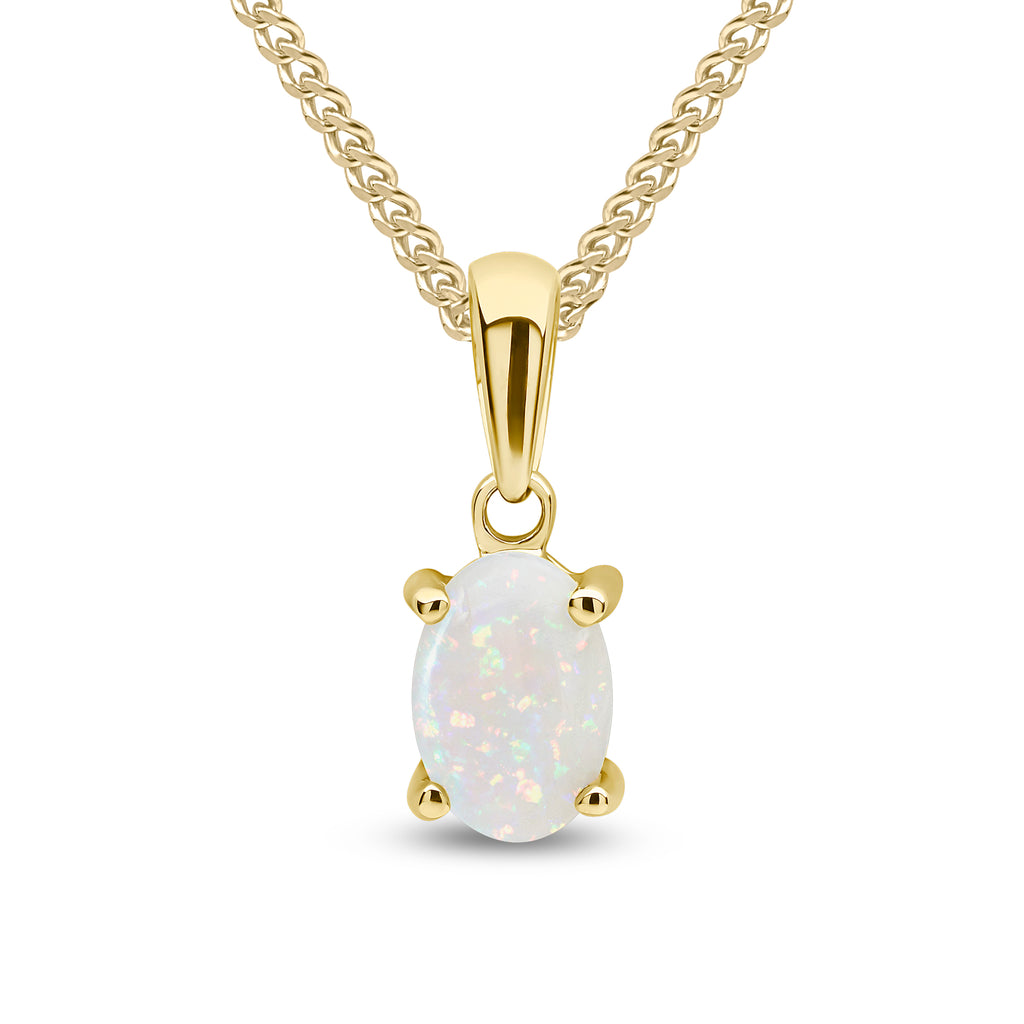 9CT Yellow Gold Oval Opal Claw Pendant 6x4mm