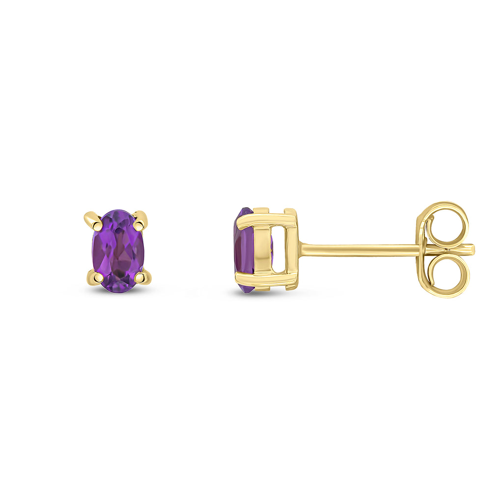 9CT Yellow Gold Oval Amethyst Claw Stud Earrings 5x3mm