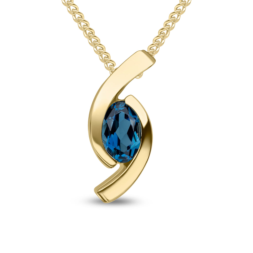 9CT Yellow Gold Oval London Blue Topaz 'Eye' Pendant 6x4mm