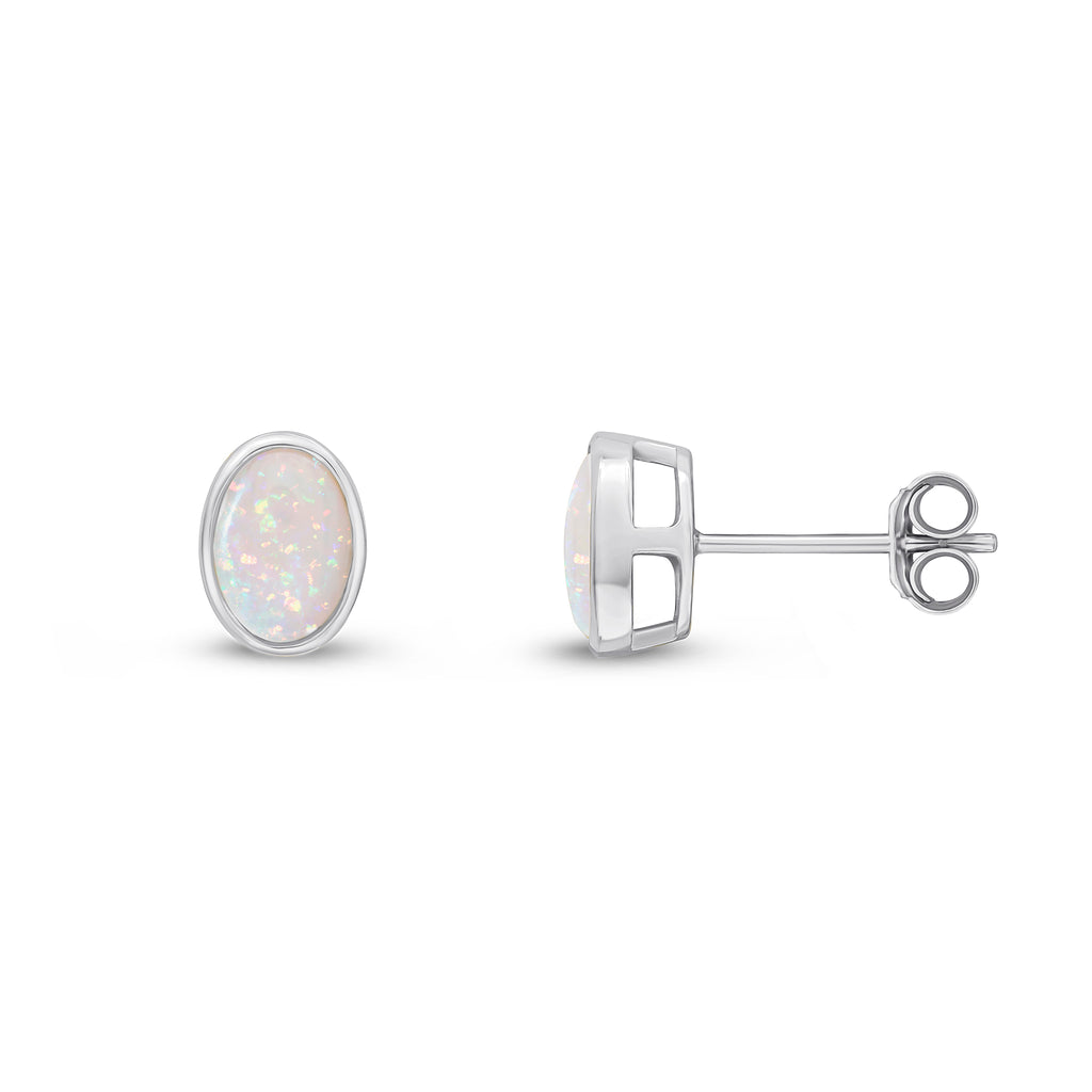 9CT White Gold Oval Opal Rubover Stud Earrings 7x5mm