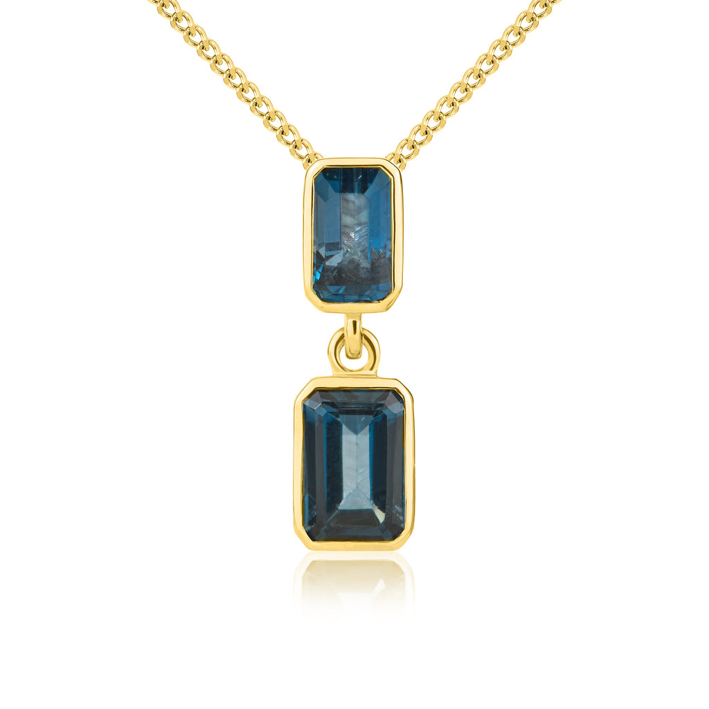 9CT Yellow Gold Octagonal London Blue Topaz Rubover Double Drop Pendant