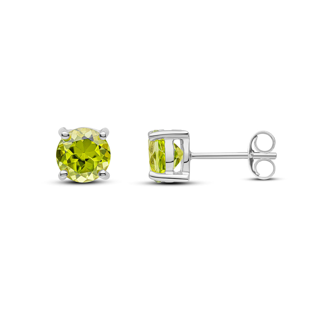 9CT White Gold Round Peridot Claw Stud Earrings 6mm