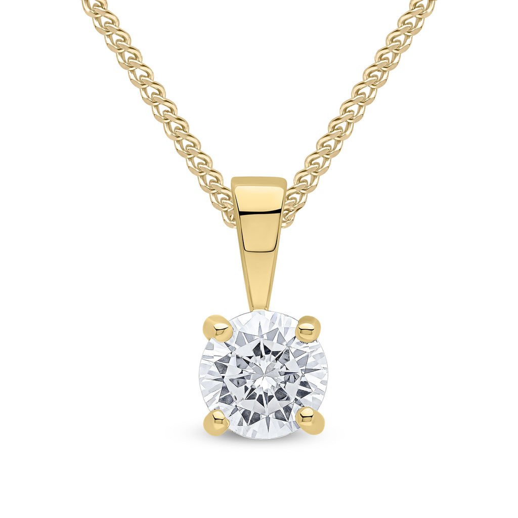 9CT Yellow Gold Round Cubic Zirconia CZ Claw Pendant 5mm
