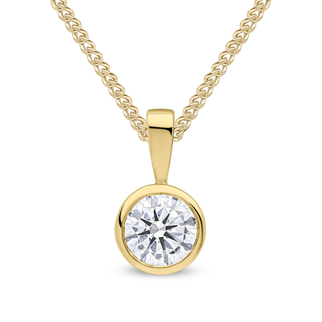 9CT Yellow Gold Round Cubic Zirconia CZ Rubover Pendant 6mm
