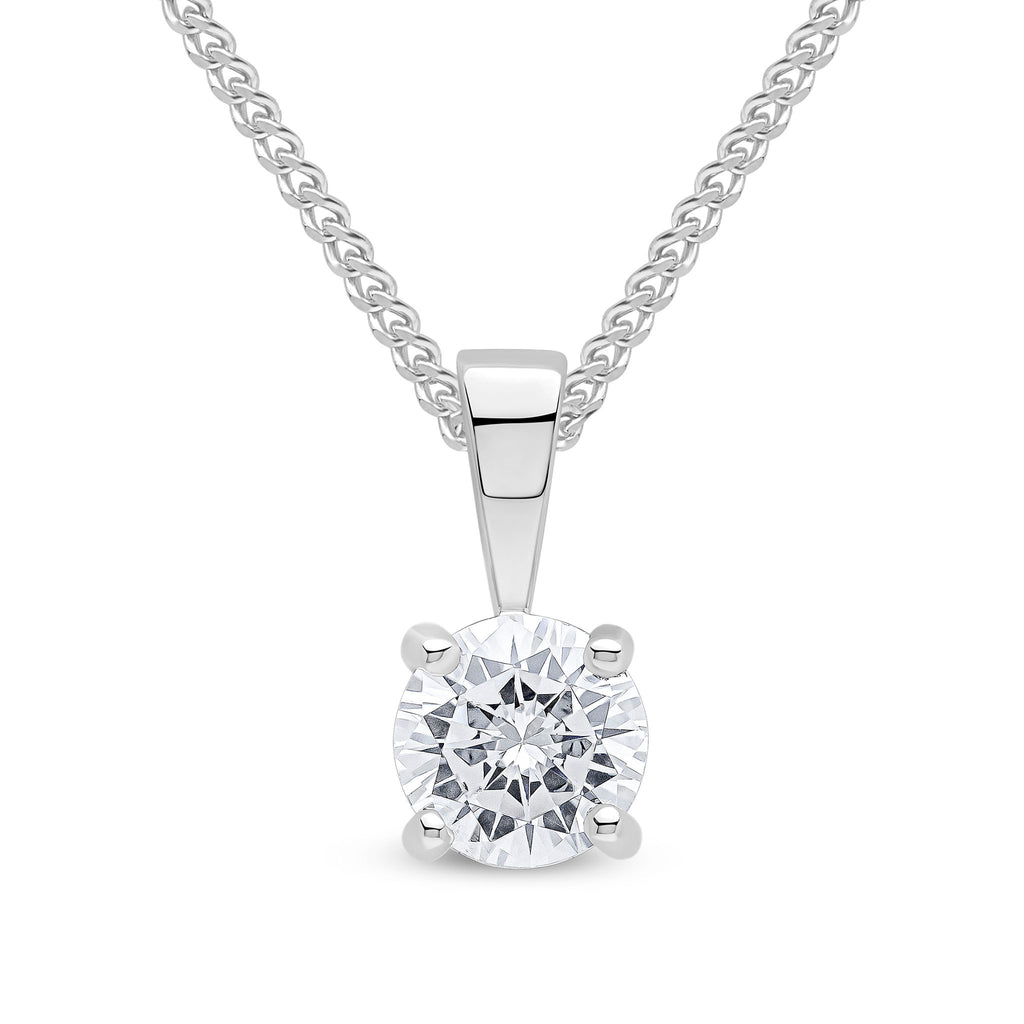 9CT White Gold Round Cubic Zirconia CZ Claw Pendant 5mm
