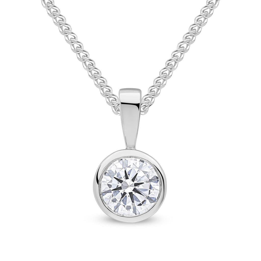 9CT White Gold Round Cubic Zirconia CZ Rubover Pendant 6mm