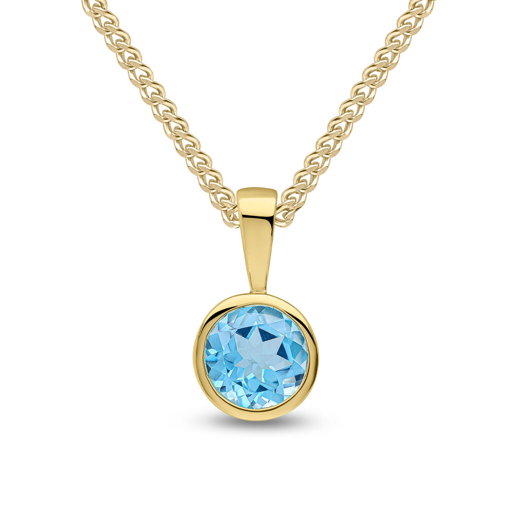 9CT Yellow Gold Round Swiss Blue Topaz Rubover Pendant 6mm