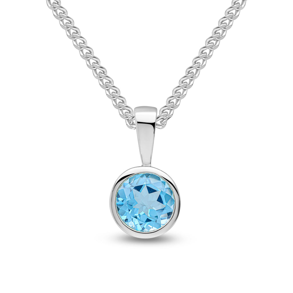 9CT White Gold Round Swiss Blue Topaz Rubover Pendant 6mm