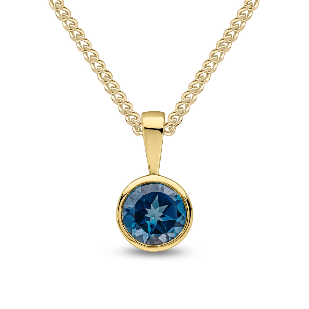 9CT Yellow Gold Round London Blue Topaz Rubover Pendant 6mm