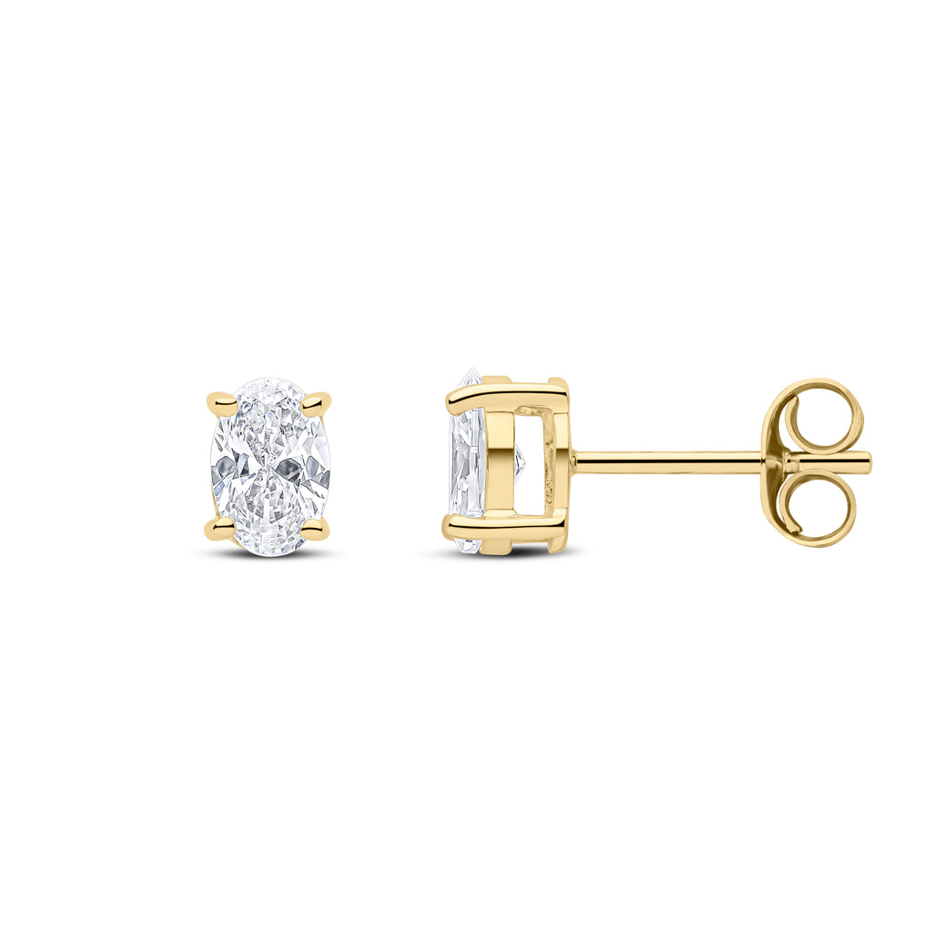 9CT Yellow Gold Oval CZ Cubic Zirconia Stud Earrings 6x4mm