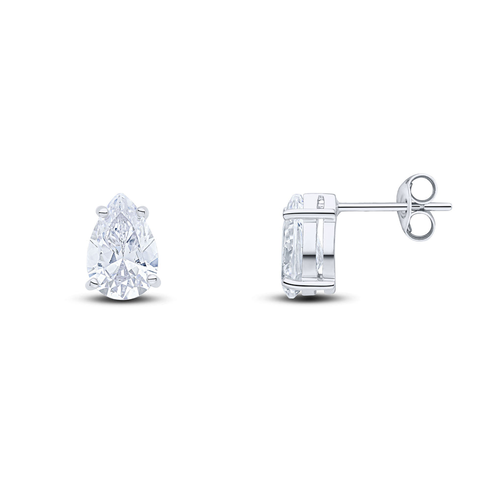 9CT White Gold Pear Shaped Cubic Zirconia CZ Claw Stud Earrings 9x6mm