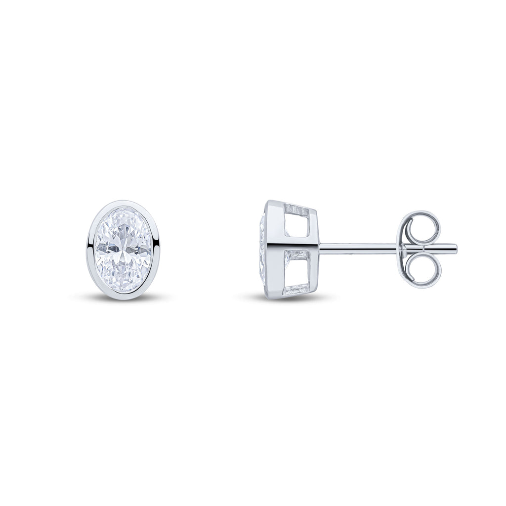 9CT White Gold Oval Cubic Zirconia Rubover Stud Earrings 6x4mm
