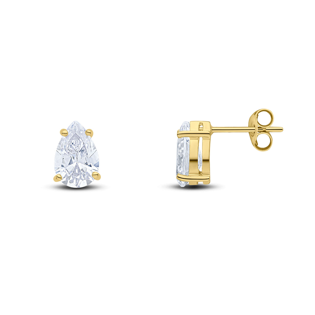 9CT Yellow Gold Pear Shaped Cubic Zirconia CZ Claw Stud Earrings 9x6mm