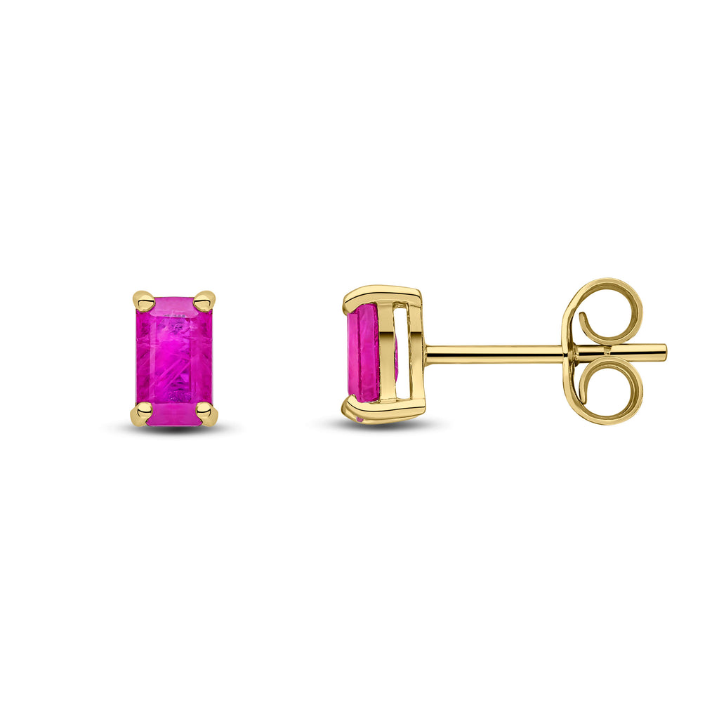9CT Yellow Gold Octagonal Ruby Claw Stud Earrings 5x3mm