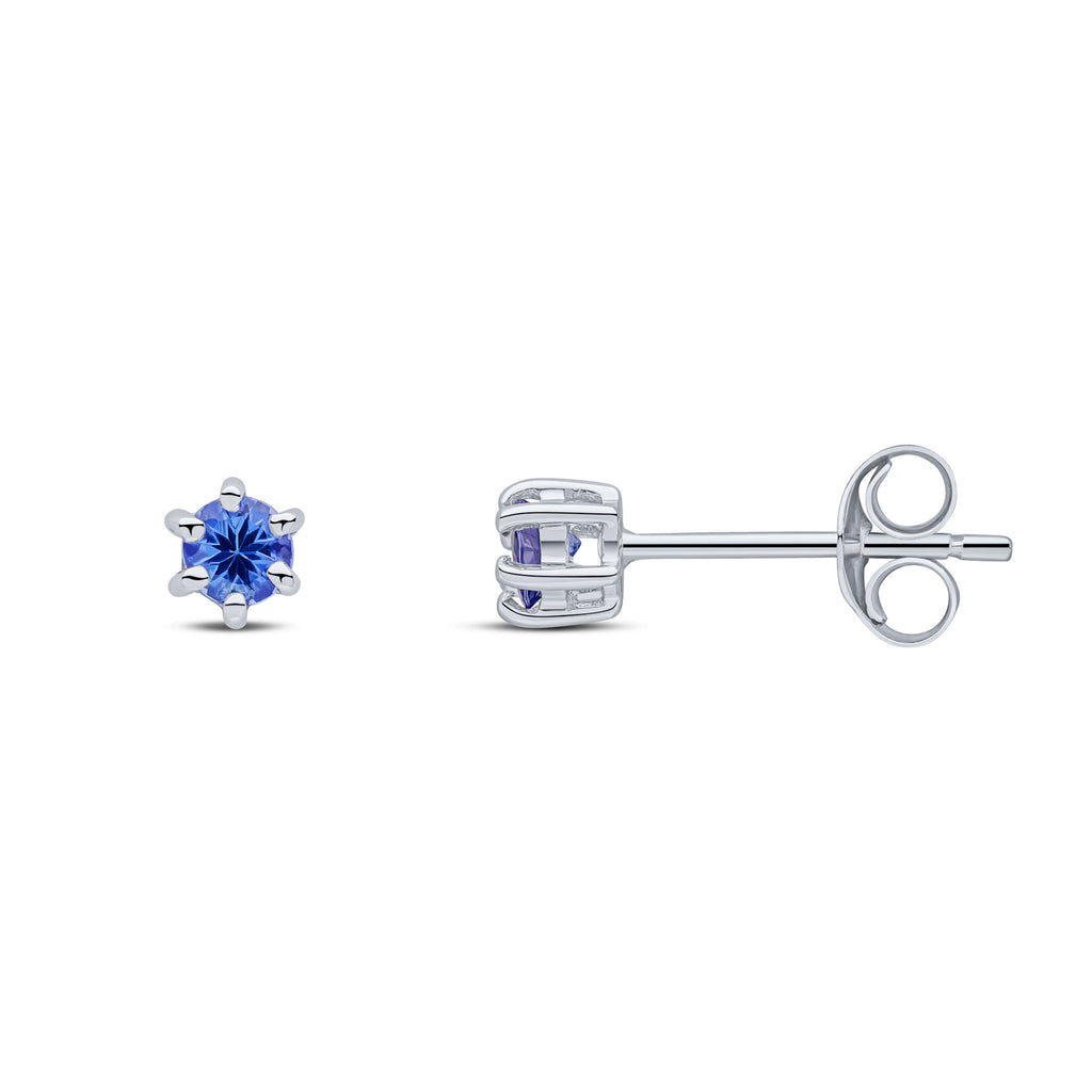 9CT White Gold Round Tanzanite Six Claw Stud Earrings 3mm