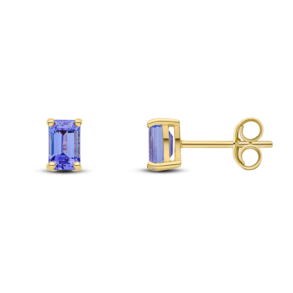 9CT Yellow Gold Octagonal Tanzanite Claw Stud Earrings 5x3mm