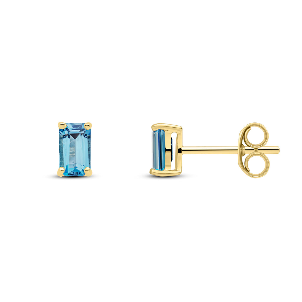 9CT Yellow Gold Octagonal London Blue Topaz Claw Stud Earrings 5x3mm