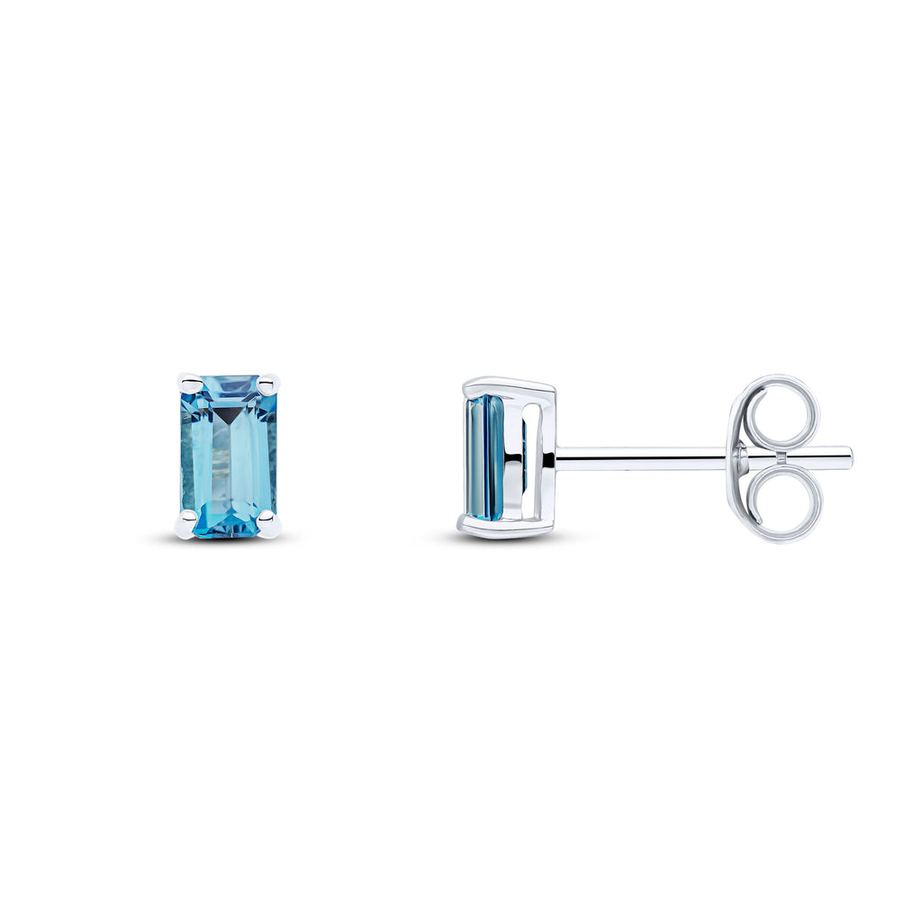 9CT White Gold Octagonal London Blue Topaz Claw Stud Earrings 5x3mm