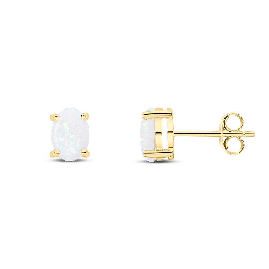 9CT Yellow Gold Oval Opal Claw Stud Earrings 7x5mm