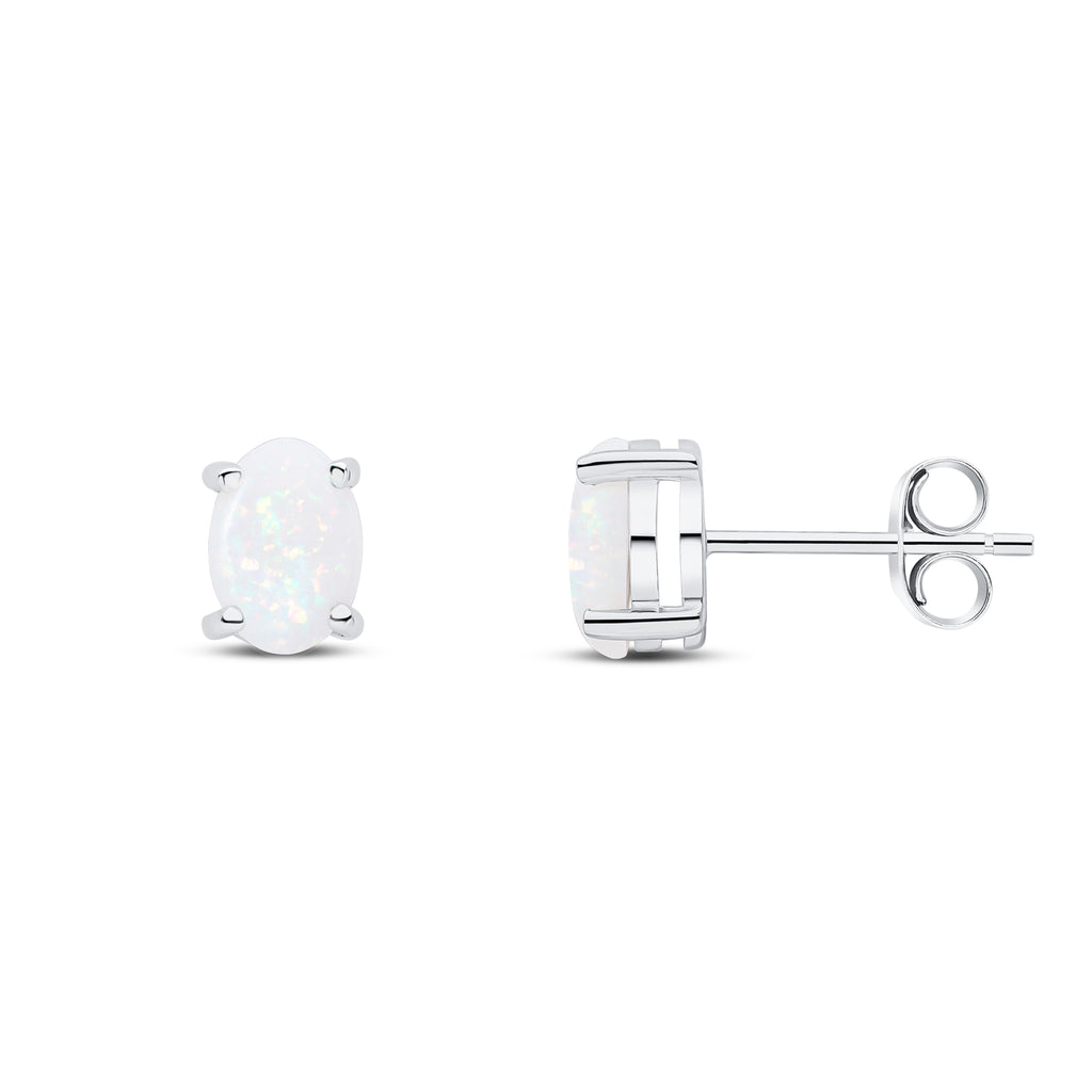 9CT White Gold Oval Opal Claw Stud Earrings 7x5mm