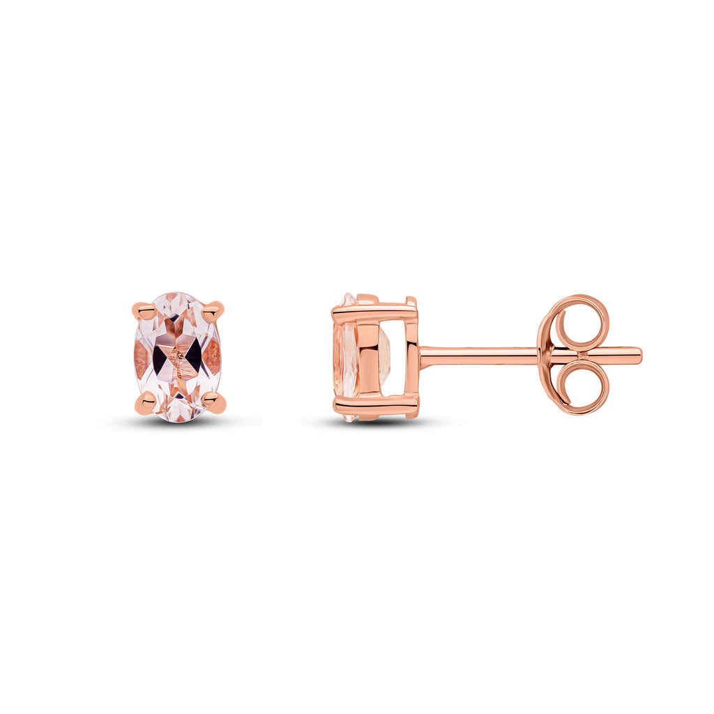 9CT Rose Gold Oval Morganite Claw Stud Earrings 6x4mm