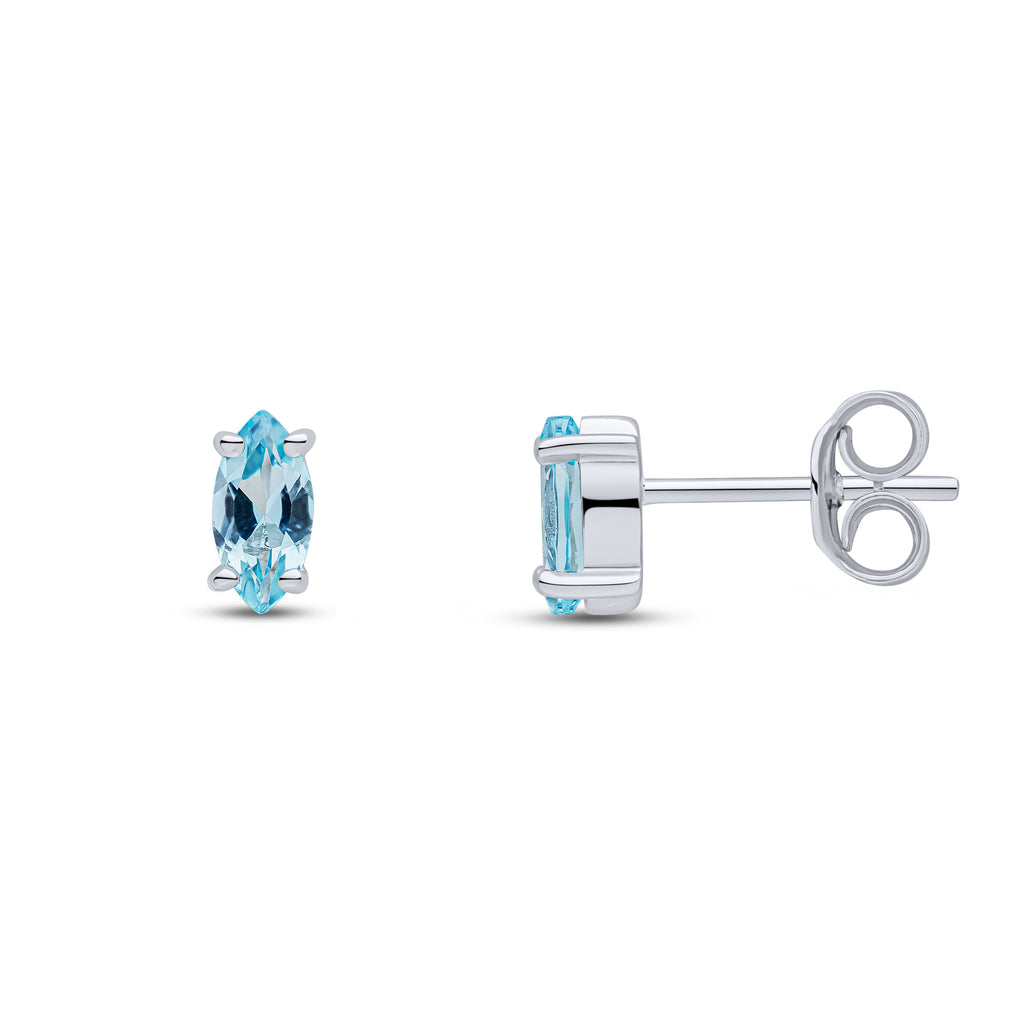 9CT White Gold Marquise Swiss Blue Topaz Claw Stud Earrings 6x3mm