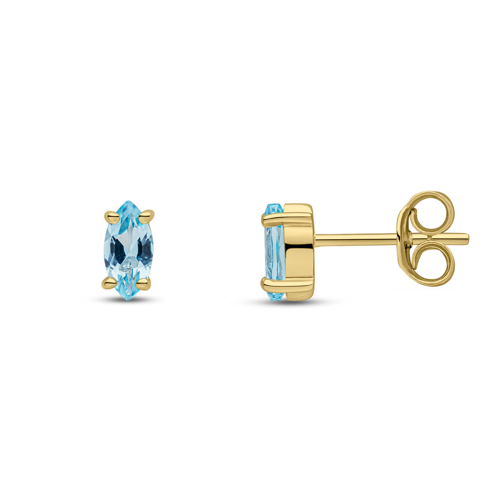 9CT Yellow Gold Marquise Swiss Blue Topaz Claw Stud Earrings 6x3mm