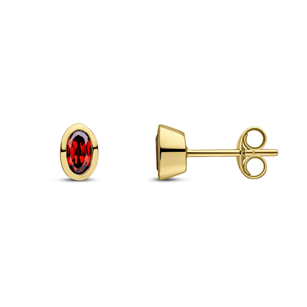 9CT Yellow Gold Oval Garnet Rubover Stud Earrings 5x3mm